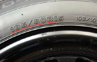 いろいろな表示がされていると思いますが、その中で「195/80/R15」や「215/70/R16」といった、/(スラッシュ)とRが入った3つの数字の組み合わせの表示を探してください。